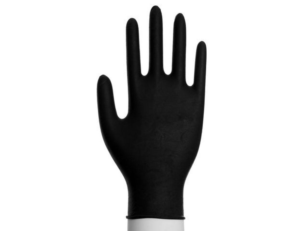 Elastisk och tunn handske i nitril för engångsbruk. Godkänd för all typ av livsmedelshantering. Denna handske anpassar sig till handens form under användning och tack vare det tunna materialet och de mikrotexturerade fingertopparna så får man en extra bra fingerkänsla. Kan användas vid kontakt med blod, kroppsvätskor, livsmedelshantering, läkemedel och en mängd olika kemikalier. - Godkända enligt: EN 455-2, EN 455-3, EN 455-4, EN 374-1, EN 374-2, EN 374-3, EN 388 (0,0,0,0), EN 421 - AQL: 1,5 - Skyddskategori: III - Tjocklek: 0,05 +/- 0,02mm - Material: nitril - Färg: svart - Längd: 24cm - Storlek: XL - Livsmedelsgodkänd - CE-certifierad - Puderfri - Latexfri