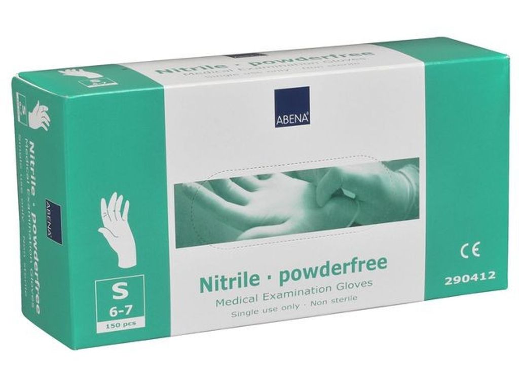 Beskrivning av Nitrilhandske puderfri vit S 150/fp