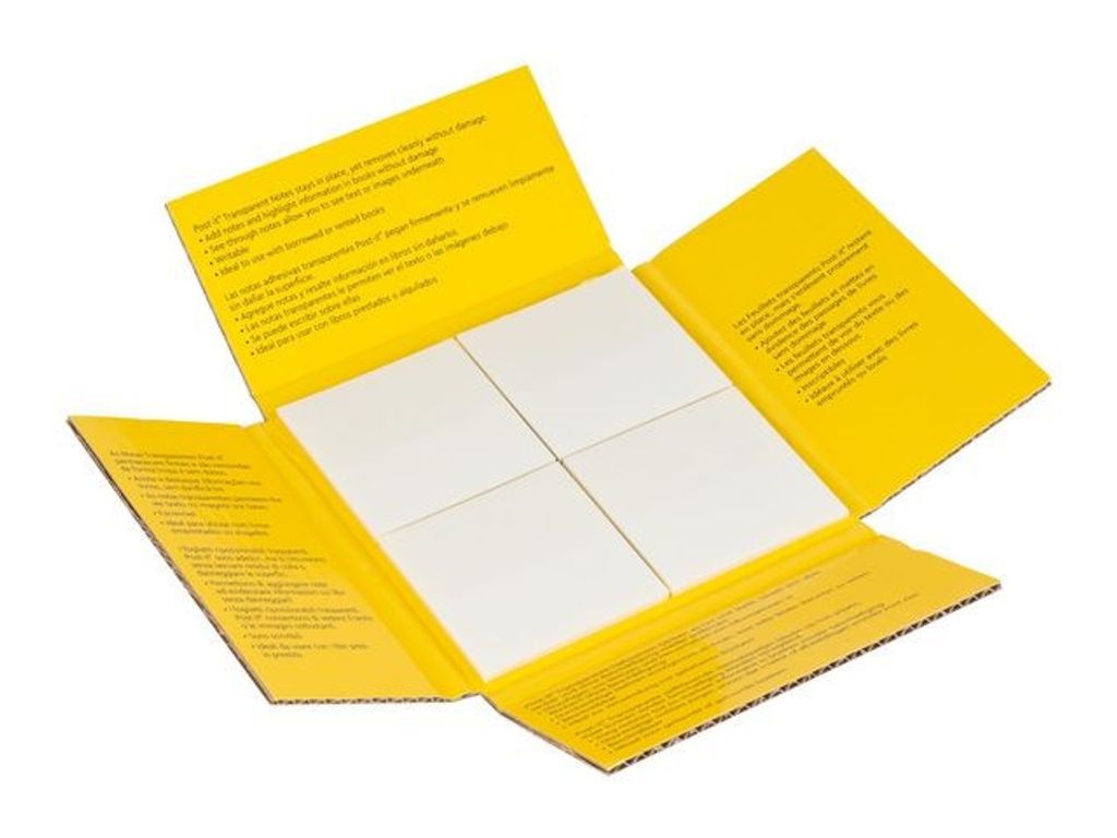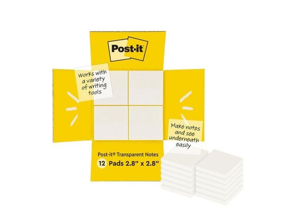 Post-it® Transparent Notes är din perfekta studiekamrat som underlättar anteckningar i böcker och samtidigt enkelt kunna se det som är under. Skriv på den med bläck, blyerts eller suddbart bläck. Allt kan raderas och notisen återanvändas. Post-it® Transparent Notes är genomskinliga notes för böcker, hantverk eller andra projekt där du behöver göra anteckningar och enkelt vill kunna se det som är under. Utmärkta för att göra anteckningar i dina läroböcker, du ser igenom dem och kan lyfta fram eller markera ett specifikt innehåll, utan att skada boken. Använd i din kalender där du vill skriva anteckningar men inte blockera annan info. För hantverk och pyssel, som att visa bilder eller mönster från andra föremål. Transparent Notes har ett unikt häftämne avsett för papper som lossnar enkelt utan att lämna kvar några spår. Transparent Notes fäster ordentligt, är flyttbara och lossnar enkelt utan att dokumenten skadas. - Notes är enkla att skriva på, flytta eller ta bort. - Mått: 73x73mm - 36 blad/block - Antal per förpackning: 12 block - Suddbara notisar - Unikt häftämne som inte skadar underlaget eller lämnar spår - Återvinningsbar förpackning