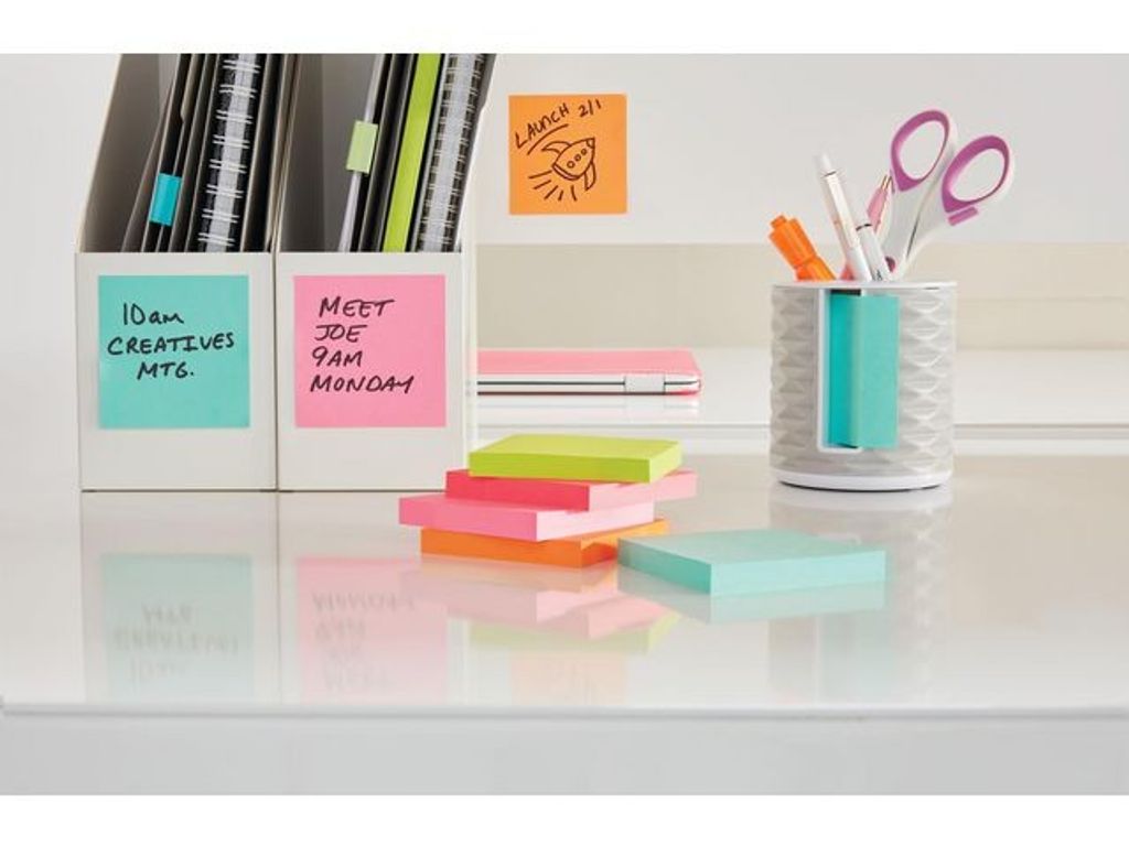 Med Post-it® i färgerna Beachside når budskapet fram. De är perfekta när du vill ha ordning och reda med färgstarka meddelanden som lyser upp både kontoret och hemmet. Gör dina meddelanden mer personliga med hjälp av färger som verkligen syns med självhäftande Post-it® Notes Beachside Collection. Tillverkas av PEFC-certifierade pappersfibrer, som kommer från hållbart skogsbruk och kontrollerade resurser. Förpackningen tillverkad av återvunnen wellpapp kan återvinnas när den inte behövs längre. Ladda ner den kostnadsfria Post-it®-appen för att läsa in och spara ditt arbete direkt. Du kan dela dina anteckningar med ditt team utan fördröjning. - Storlek: 38x51mm - Blad per block: 100st - Antal block per förpackning: 12st - Förpackningen tillverkad av återvunnen wellpapp - Tillverkas av PEFC-certifierade pappersfibrer