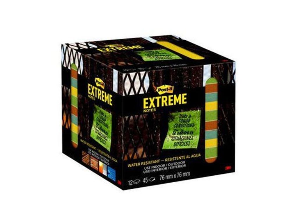 Notes POST-IT Extreme är notes blocket som klarar av tuffa ytor och svårare förhållanden. Det här notes blocket går att använda i så fall varm som kall miljö, inomhus eller utomhus. Tack vare att det är gjort av ett Ultra-starkt Dura-Hold ™ -papper så är det vattentåligt, hållbart, skrivbart och det lämnar inga spår efter sig. Ett block som klarar det lilla extra. - Ultra-starkt Dura-Hold ™ -papper - Storlek: 76x76 mm - Färg: Grön, Orange, Gul - Antal block/fp: 12