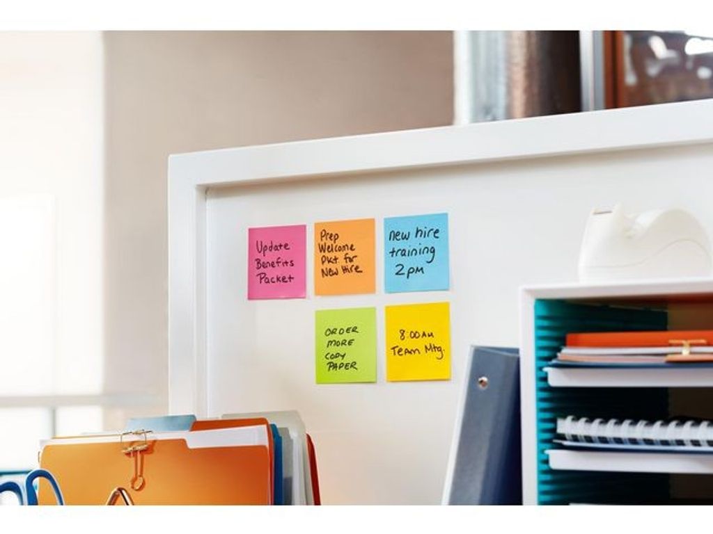 Våra självhäftande Post-it® Z-Notes är perfekta när du pratar i telefon eller har händerna fulla med annat: dra av en Notes och ha andra handen fri. De är superstarka, superflexibla och designade för att dina meddelanden ska synas. Post-it® Super Sticky Z-Notes är starkare och sitter kvar längre. De har dubbelt så stark häftförmåga som Post-it® Original Notes, så att du kan vara säker på att ditt meddelande når fram. De självhäftande Z-Notes är perfekta när du behöver skriva ner något snabbt och sätta upp det på en lodrät yta eller ett material som är svårt att fästa på, särskilt när du pratar i telefon eller har händerna upptagna med annat. Superstarka, mångsidiga och gjorda för att ditt budskap ska synas klart och tydligt. Tillverkade av PEFC-certifierat papper från certifierade, förnybara och hållbart förvaltade skogar med ett häftämne av ett förnyelsebart material som till 60 % kommer från en växt som växer upp igen varje år. Förpackningen tillverkad av återvunnen wellpapp kan användas för att enkelt förvara dina notes i ett skrivbord eller skåp och kan återvinnas när de inte behövs längre. - Mått: 76 mm x 127 mm - Perfekta för lodräta eller svåra ytor som datorskärmar, dörrar och väggar - Häftämne från av ett förnyelsebart material - Tillverkas av PEFC-certifierade pappersfiber - Förpackningen tillverkad av återvunnen wellpapp kan användas för att enkelt förvara dina självhäftande notes och kan återvinnas när de inte behövs längre