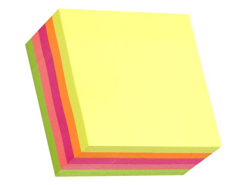 Noteskub med flyttbara, självhäftande blad. Kuben innehåller 450 blad med 90 blad i fem olika färger. Ha dina anteckningar, roliga meddelanden, påminnelser och att-göra-listor nära till hands med de här. Bärbara så att du kan ta dem med överallt eller placera dem på ditt skrivbord inom enkelt räckhåll. - Självhäftande notesblad i kub - Antal blad: 450 - Mått: 76 x 76 mm - Neonfärgerna: Grön, persika, cerise, orange och gult - FSC-certifierad