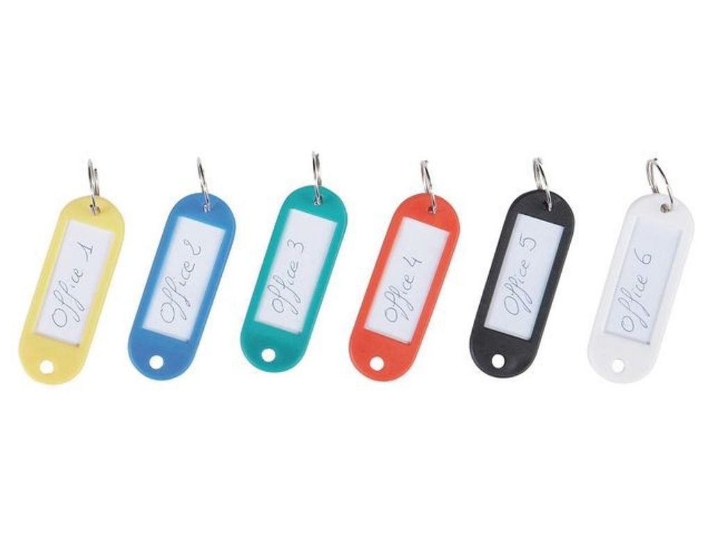 Nyckelbricka som gör det enkelt att se skillnad på nycklar. Plastskylt med liten nyckelring. Med vita pappersetiketter som kan bytas ut. - 20/fp - Utvalda färger. - Mått: HxB 2,1 x 5,4 cm - Garanti 1 år