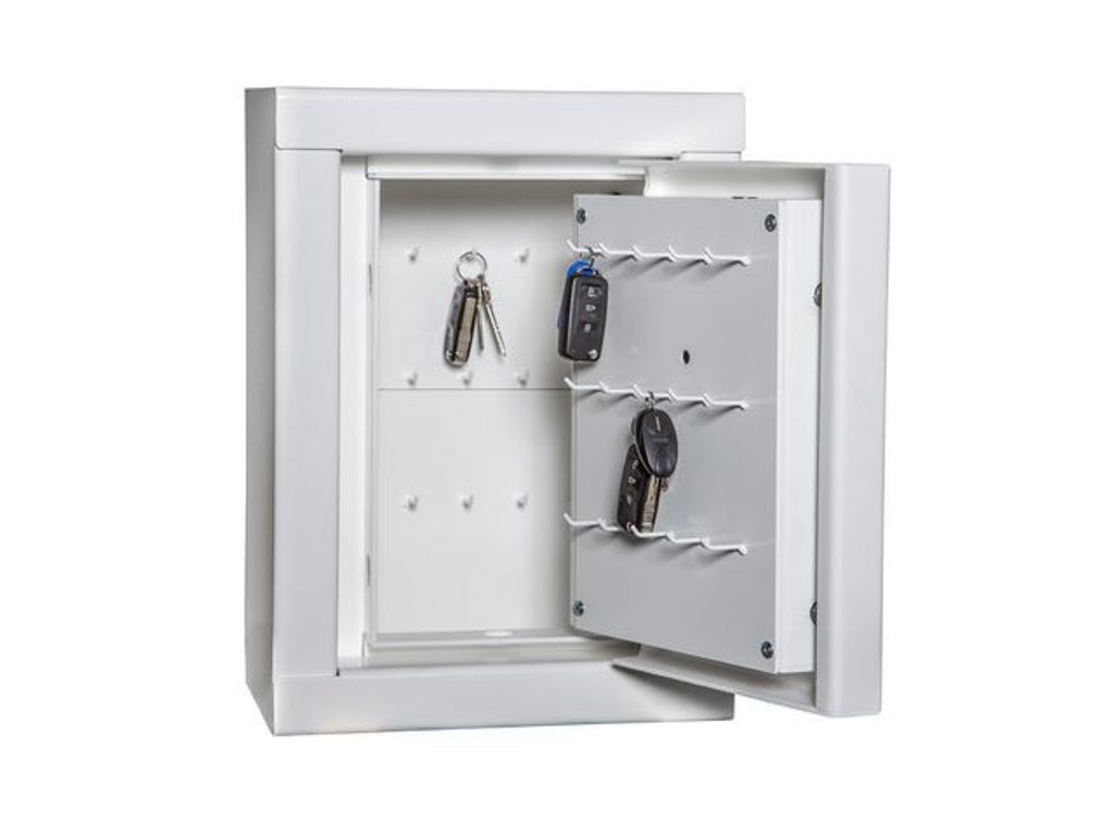 Beskrivning av Nyckelskåp HÅBECO 42 långa krokar Vägghängt nyckelskåp med 42 st långa krok, inbrottsklass SS3492. - Utvändiga mått 475x350x220 mm (HxBxD) - Vikt 40 kg - Elektroniskt kodlås går att få som tillval, art 219773.