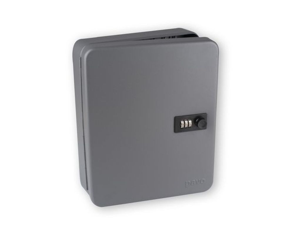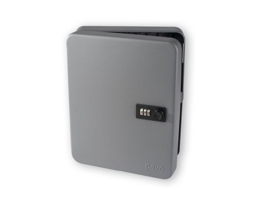 Förvara dina nycklar säkert. Pavo nyckelskåp har plats för 36 nycklar och har ett unikt nyckelinkast för returnering av nycklar. Skåpet är låsbart med kodlås. 8 mm tjockt stål. - Grå - Låsbart - Plats till 36 nycklar - Mått: 240x300x80 mm