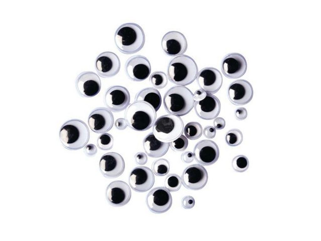 Svart/vita ögon med rörliga pupiller i tre olika storlekar. Limmas enkelt fast. - Antal: 300/FP - Färg: Svart och vit - Storlek: 7, 10 och 15 mm - Tjocklek: 3,15 - 4,25 mm - Material: PVC