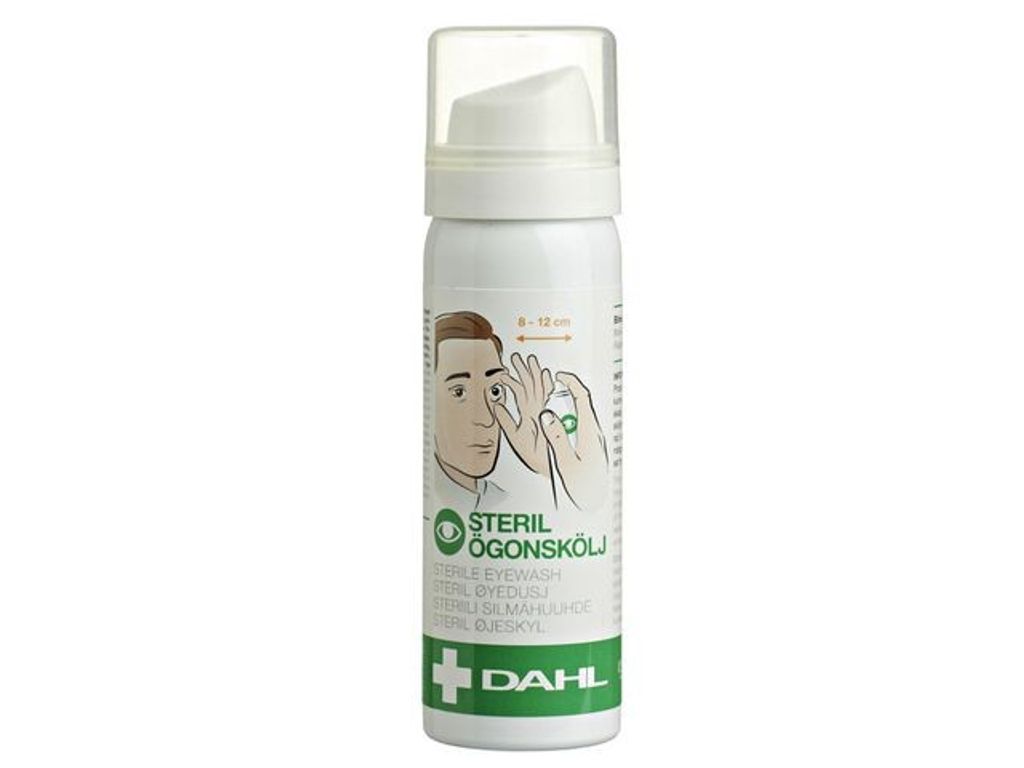 Liten, smidig ögonskölj som ger en behaglig genomsköljning av ögat. Ögonskölj 45 ml är optimal när du akut behöver spolning av ögonen. Den är liten, smidig och ger en behaglig genomsköljning av ögat. Ögonskölj kan på ett enkelt sätt hållas tillgängligt överallt när det bäres i bältesfästet. Spoltiden är 1 minut och flaskan innehåller steril koksaltlösning (0,9%).