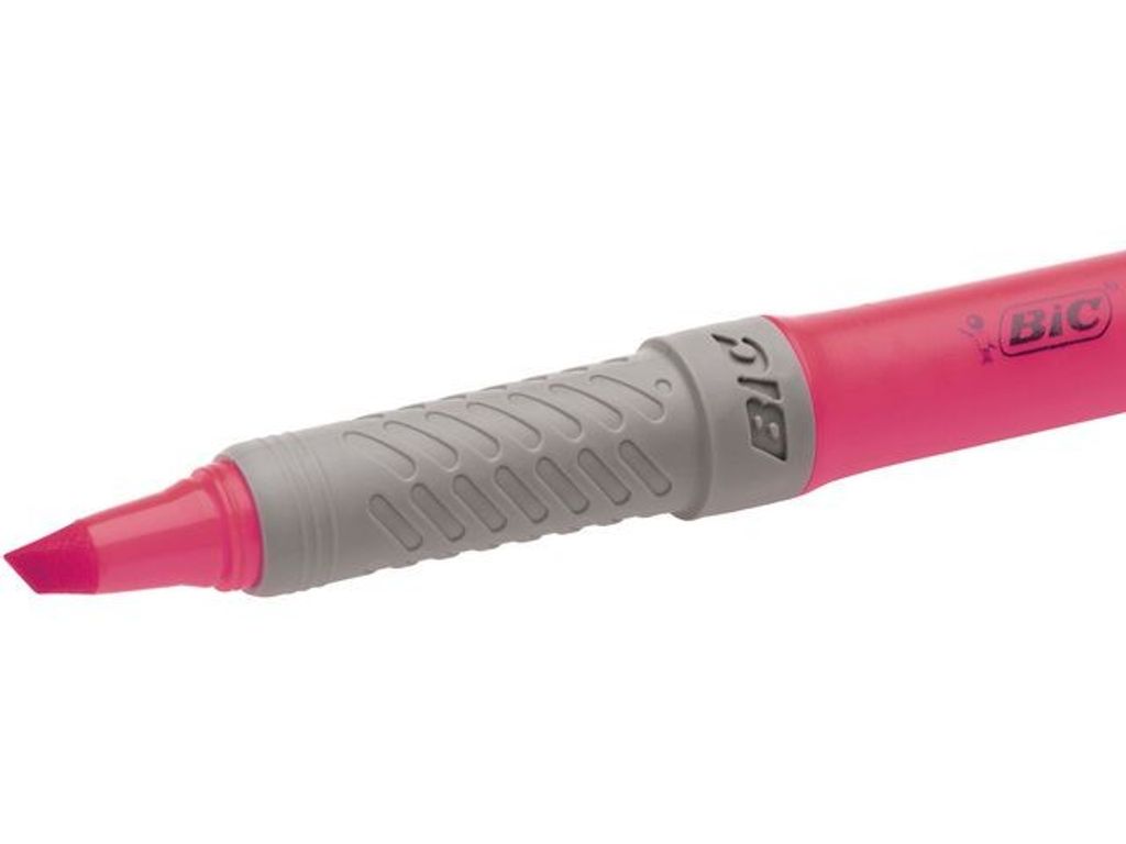 Håll bekvämt i den här Bic-överstrykningspennan under möten eller föreläsningar på universitetet och stryk under viktig information för senare granskning. Maximera studier eller anteckna med Bic-överstrykningspennan, som har en bekvämt strukturerad kolv för bra grepp. Det ljusa fluorescerande bläcket lyfter ut viktiga delar från sidan för enkel granskning, medan du med den snedskuren spetsen kan markera ordet eller stryka under stycken som du vill. Med vattenbaserat bläck är Bic-överstrykningspennan perfekt för användning på papper, fax eller fotokopior. - Med huv - Snedskuren spets - Linjebredd på 1,6 - 3,4 mm - Textfärg: Fluorescerande Rosa - Färg pennkropp: I samma färg som textfärg