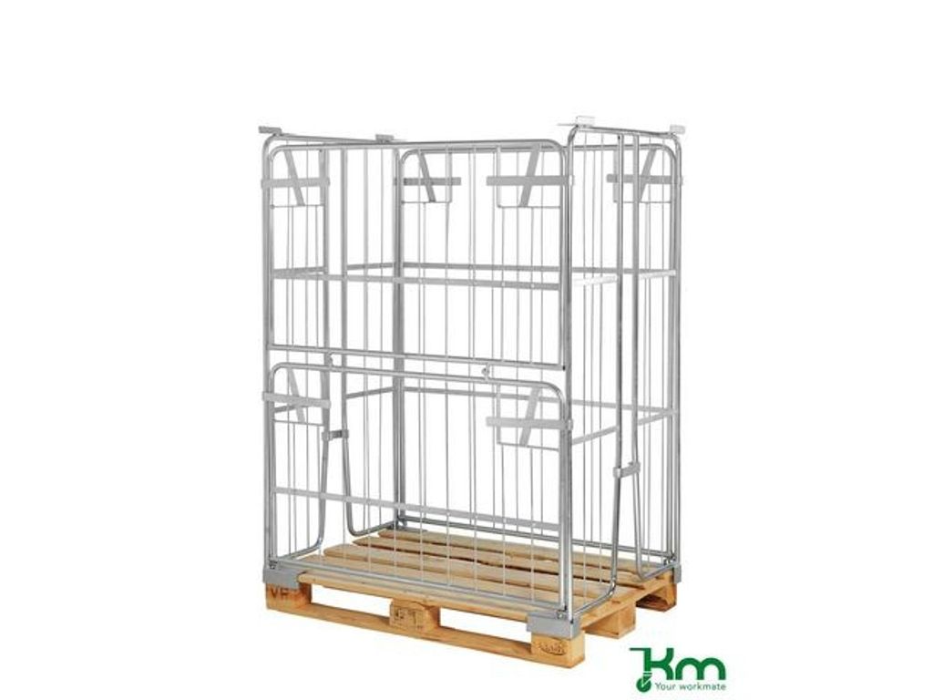 Pallcontainer anpassad för EUR-pall. Anpassad för EUR-pallar med storlek 1200 x 800mm. Halva långsidan går att fälla eller ta bort helt om man så önskar. Levereras omonterad. - Storlek: 1200 x 800 x 1500mm (LxBxH) - Invändigt mått: 1160 x 760mm - Färg: Elförzinkad - Vikt: 39kg