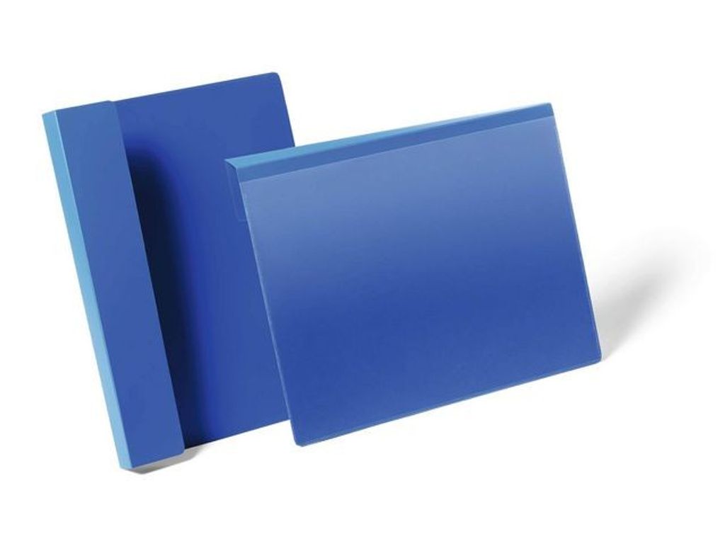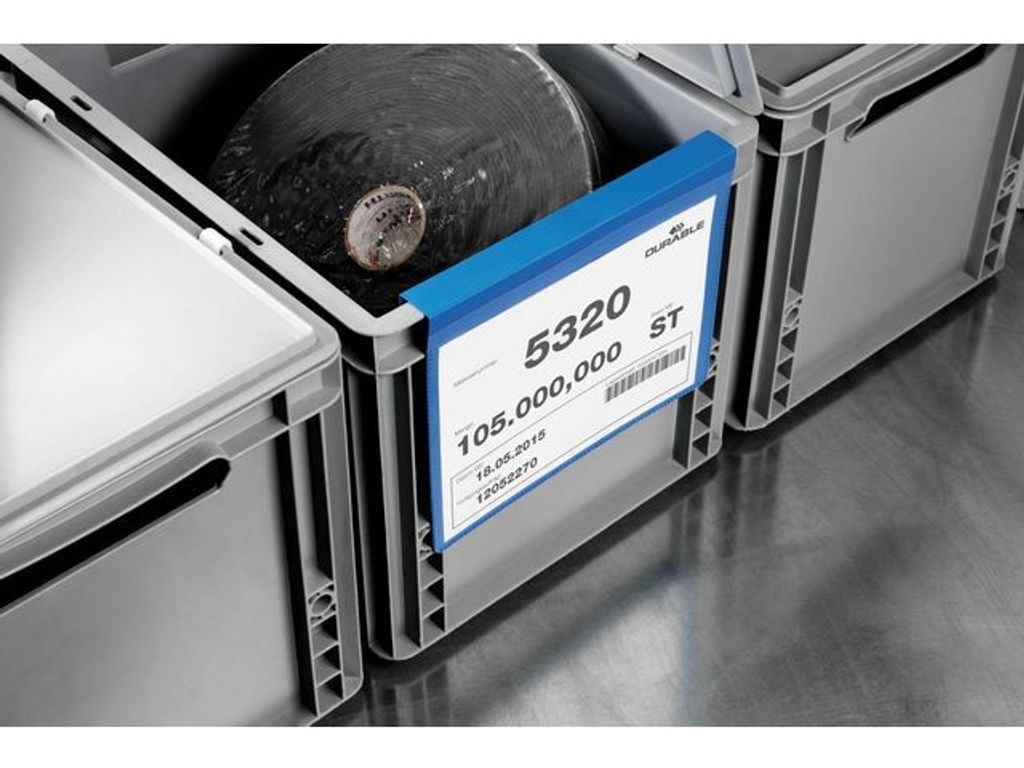 Tydlig och översiktlig märkning av pallkragar, pallar och kartonger som förbättrar och effektiviserar arbetsprocessen på lager och i produktionsanläggningar. Dessa plastfickor av slitstark polypropylene går att läsa med skanner och skyddar de utbytbara inlagorna från smuts och slitage. Fickorna levereras platta och är förberedda att vikas för två olika funktioner. Vik en gång och det blir en ficka som är vinklad 90° och kan stickas in mellan staplade kartonger. Inget behöver klistras fast på kartongen och fickan hålls på plats av tyngden från kartongen ovanför. Vik två gånger och det blir som en bockad ficka att hänga över t ex pallkragekanter som är max 22 mm. Gratis mall för etiketten finns på www.duraprint.se. - Innermått: A4L (297 x 210 mm B x H) - Yttermått: 317 x 321 mm (B x H)