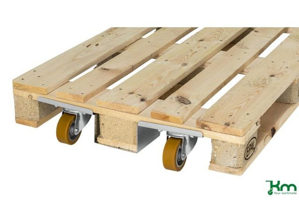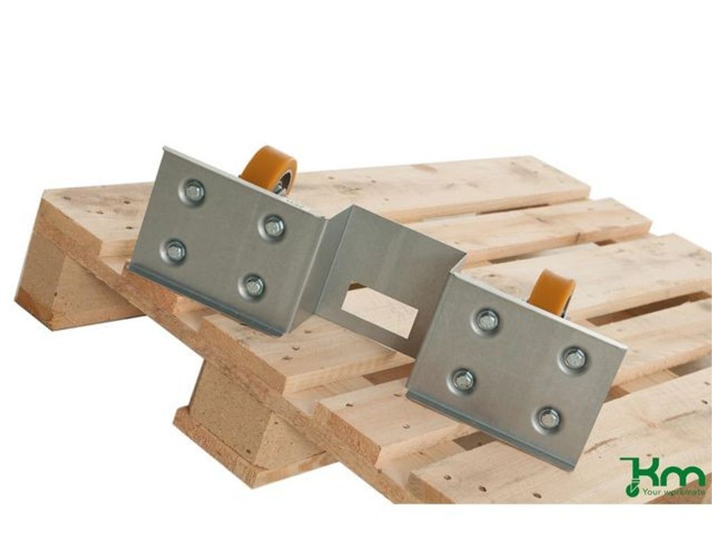 Pallrullare som hjälper dig att hantera det långa godset när inte pallyftaren räcker till. Tillverkad av aluzinkbehandlad 2 mm stålplåt. Utformad för EUR-pallar. Med ett praktiskt bärhandtag. - Belastning: 2000kg - Storlek: 575 x 160 x 150mm - Frigångshöjd: 40mm - Färg: Elförzinkad - Vikt: 6kg - Bromsade hjul: Nej - Hjul: 2 länk, 100mm tunglasthjul