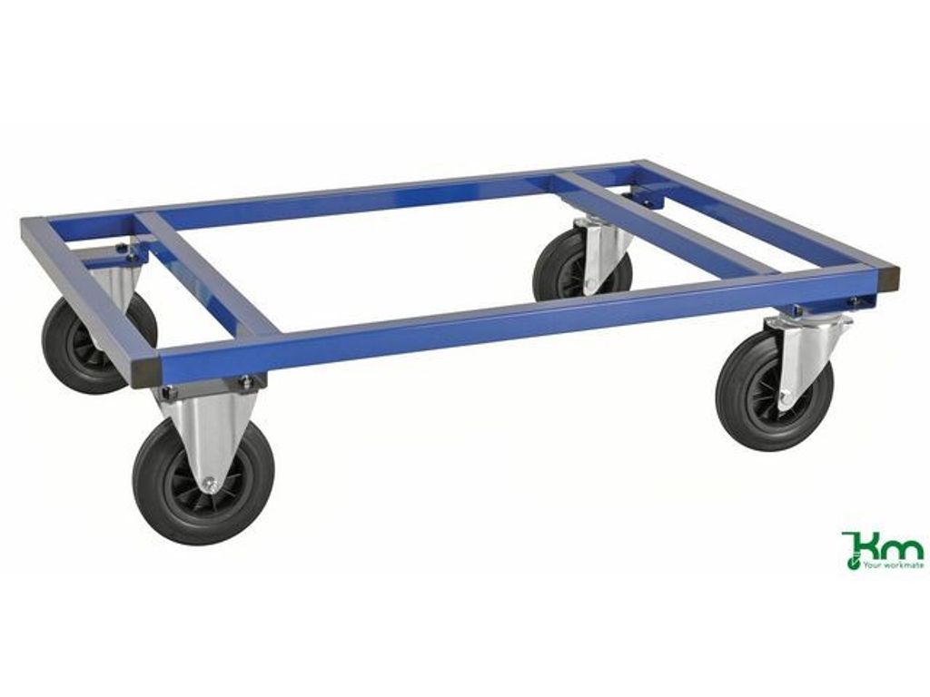 Beskrivning av Pallvagn Låg 1200x800mm blå Pulverlackerad pallvagn anpassad för EUR-pall med storlek 1200 x 800 mm. Praktisk vagn för EUR-pallar. - Belastning 800kg - Storlek: 1200 x 800 x 305mm - Färg: Blå - Vikt: 24kg - Bromsade hjul: Nej - Hjul: 2 fasta, 2 länkhjul 200mm