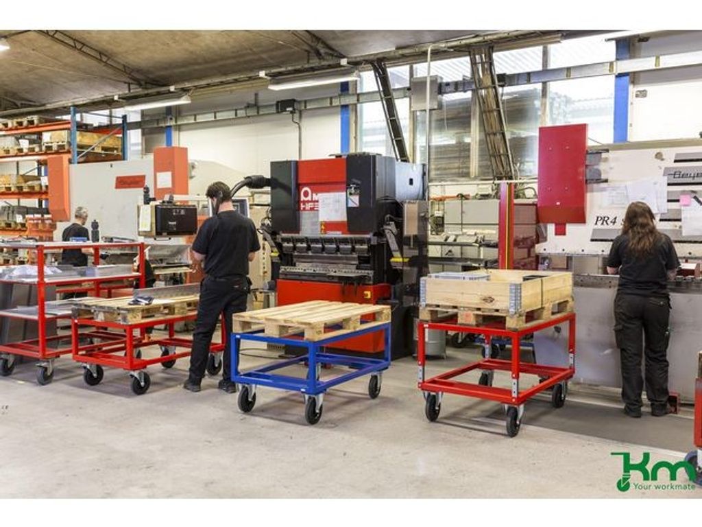 Pulverlackerad pallvagn anpassad för EUR-pall med storlek 1200 x 800 mm. Är ställbar i höjden 655 - 835mm. - Belastning 800kg - Storlek: 1200 x 800 x 655mm - Färg: Röd - Vikt: 40,5kg - Bromsade hjul: Ja - Hjul: 2 fasta, 2 länkhjul med broms 200mm