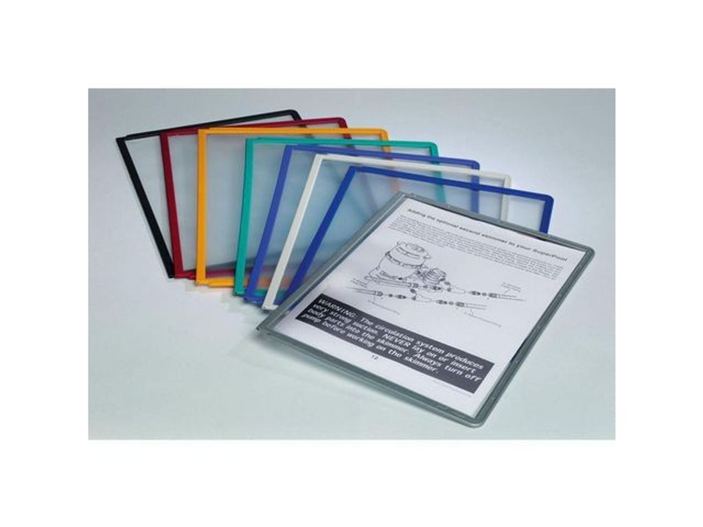 Beskrivning av Panel DURABLE A4 blå Praktisk panel SHERPA A4 av polypropylen för översiktssystem. Passar i alla Durable A4-ställ. Färgad ram och öppen upptill för enkel i-och ursättning av dokument