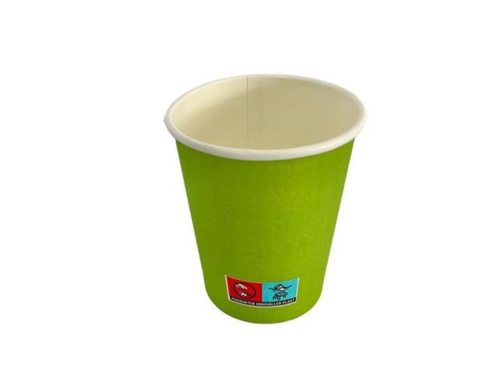 Kvalitativa engångsartiklar! Tillverkad av 100 % komposterbart material. Pappersmugg med designtryck som är lämpliga för användning med varma drycker. PEFC-certifierad - Färg: Grön - Förpackad kvantitet: 50 st - Volym: 250 ml