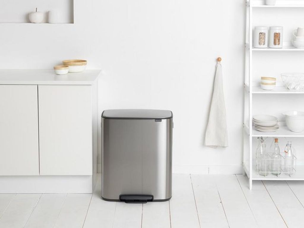 Sortera och organisera enkelt och snyggt med denna pedalhink! Möt Bo Pedal Bin - Brabantias stora skönhet. Mjukstängande, superlätt att använda, stadigt och utrymmeseffektiv - den passar perfekt mot en vägg. Ett stort plus med 10 års garanti. Mjukstängande lock med ett enkelt tryck på pedalen. Idealisk för större sysslor och när du byter ut påsarna – låt locket stå öppet. Lätt att rengöra - urtagbara innerhinkar. Halkfri bas - skyddar golvet och håller pedalhinken stabil. Enkel avfallshantering utan spill – med stor öppning. 10 års garanti och service. CradletoCradle certifierad - Bronsnivå. Provpaket med medföljande PerfectFit-påsar (kod O) - passar perfekt i tunnan utan att den syns utifrån. Enkel att flytta runt – med stabila bärgrepp.