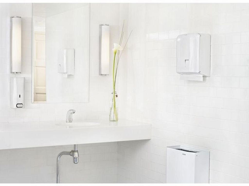 Spara värdefull golvyta med den här papperskorgen från Katrin®. Den här lätta och robusta papperskorgen är idealisk för toaletter med begränsat utrymme. Den här snygga papperskorgen rymmer 25 liter papper eller icke nedspolbart avfall så att allmänna utrymmen kan hållas rena och fräscha för alla besökare. Korgen är enkel att tömma, har snygg utformning och är tillräckligt neutral för att passa med de flesta inredningsstilar. För att systemet ska bli effektivt bör papperskorgen användas tillsammans med 25-liters soppåsar från Katrin®. - Enkel att tömma - Enkel att montera - Rosttålig - Står emot repor och bucklor - Tålig - Uppfyller: ISO 14001, ISO 9001 - Material: Borstat rostfritt stål - Vikt: 3,81 kg - Kapacitet: 25 liter - Storlek (D x H x B): 355 x 460 x 170 mm - Färg: Vit