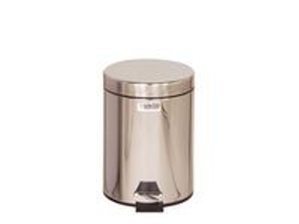 Rund pedalhink i rostfritt stål, enkel och hygienisk att använda. Pedalhinken är tillverkad i blankpolerat rostfritt stål och har en invändig plasthink som är urtagbar. Detta gör det enkelt att bortskaffa avfall och hålla pedalhinken ren. Hinken lämpar sig för användning på toaletten. Perfekt för arbetsplatsen, matsalen och hemmet. - Höjd: 335 mm - Diameter: 255 mm