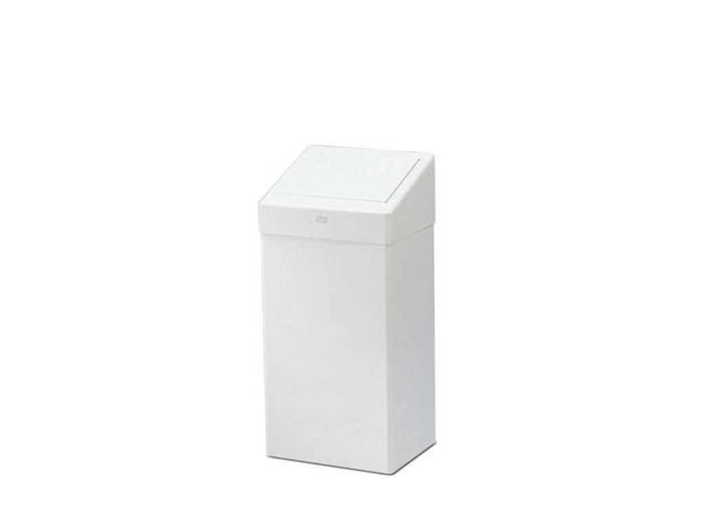 Lock som är enkelt att fästa: håller soppåsen på plats. Tork papperskorg 50L av metall är lämplig för många olika typer av toalettutrymmen och kan monteras flexibelt på den vägg där den behövs. Enkelt underhåll och flexibla monteringsalternativ för att ge ett rent intryck. - Höjd: 605 mm - Bredd: 355 mm - Längd: 275 mm