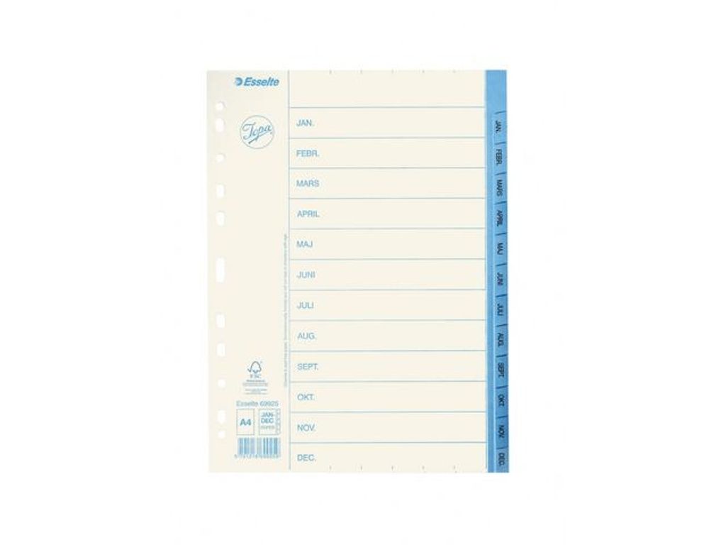 Esselte® Jopa pappersregister möjliggör enkel och effektiv organisering av dina dokument och pärmar En klassiker på svenska kontor. Tillverkas av gultonat 90g kraftpapper som är klor och syrafritt. Flikarna är blå med svart tryck. Finns även med otryckta flikar. Samtliga Jopa register är tillverkade av FSC® certifierat papper vilket gör dem till ett bra miljöval. - Pappersregister, märkta Jan-Dec - Mått: A4 - Klor och syrafritt papper - Gultonat papper 90 g/m2 - FSC® certifierat - Klimatneutral - Tillverkad inom EU - 5 års garanti - EU-hålade med 11 perforerade hål