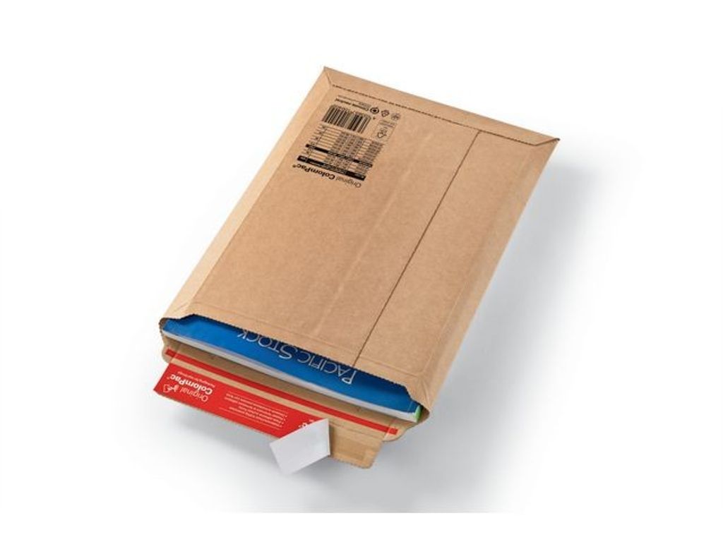 Mycket starkt kuvert i papp som är justerbart i höjdled. ColomPac pappkuvert har extra kantskydd, som förhindrar att innehållet böjs eller skadas. Med Peel & Seal-förslutning och öppningsremsa. - Invändigt mått (LxBxH): 235 x 340 x 35mm - Utvändigt mått: 250 x 351mm - Vikt: 80 g - Storlek: A4+ - Antal: 20/fp