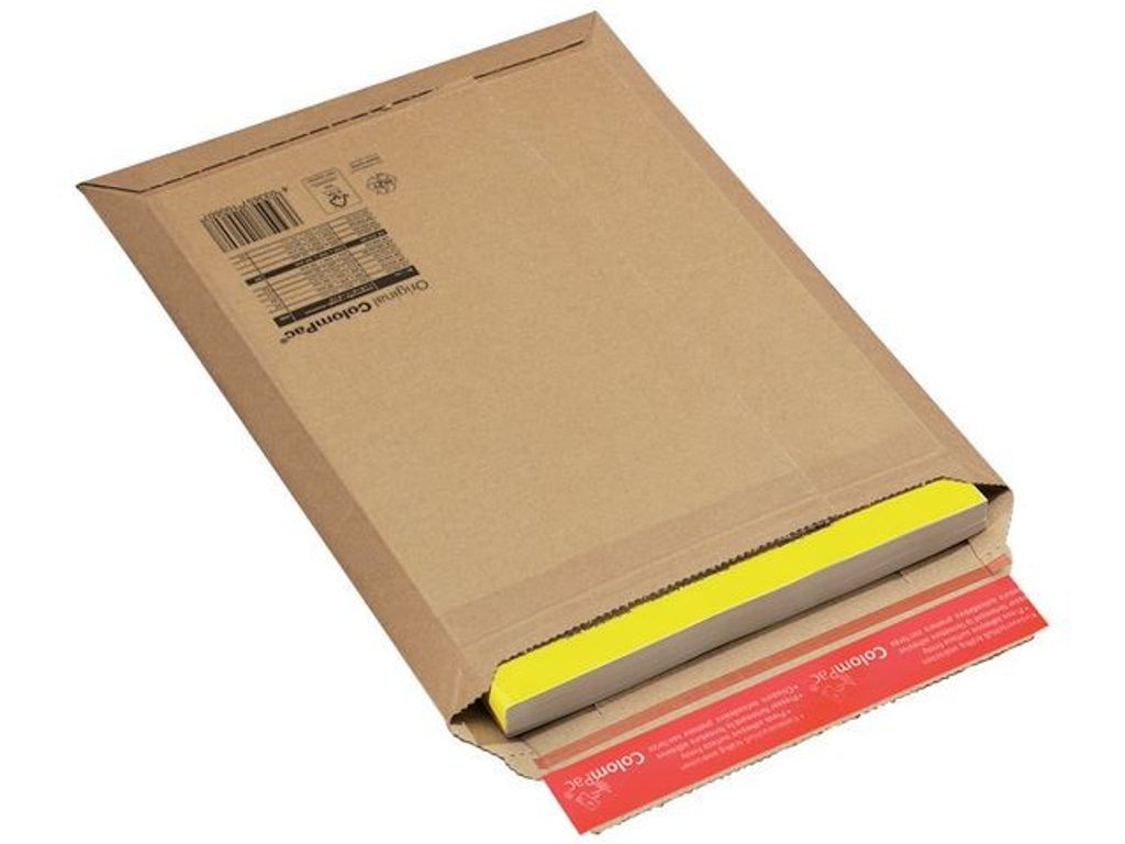 Mycket starkt kuvert i papp som är justerbart i höjdled. ColomPac pappkuvert har extra kantskydd, som förhindrar att innehållet böjs eller skadas. Med Peel & Seal-förslutning och öppningsremsa. - Invändigt mått Höjdjusterbar (LxBxH): 250 x 360 x 50 mm - Utvändigt mått: 262 x 375 mm - Vikt: 87 g - Antal: 20/fp