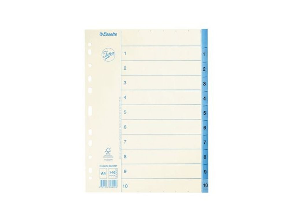 Esselte® Jopa pappersregister möjliggör enkel och effektiv organisering av dina dokument och pärmar En klassiker på svenska kontor. Tillverkas av gultonat 90g kraftpapper som är klor och syrafritt. Flikarna är mörkblå med svart tryck. Finns även med otryckta flikar. Samtliga Jopa register är tillverkade av FSC® certifierat papper vilket gör dem till ett bra miljöval. - Pappersregister, märkta 1–10 - Mått: A4 - Färg: Vit - Klor och syrafritt papper - Gultonat papper, 90 g/m2 - FSC® certifierat - Klimaneutral - Made in EU - 5 års garanti