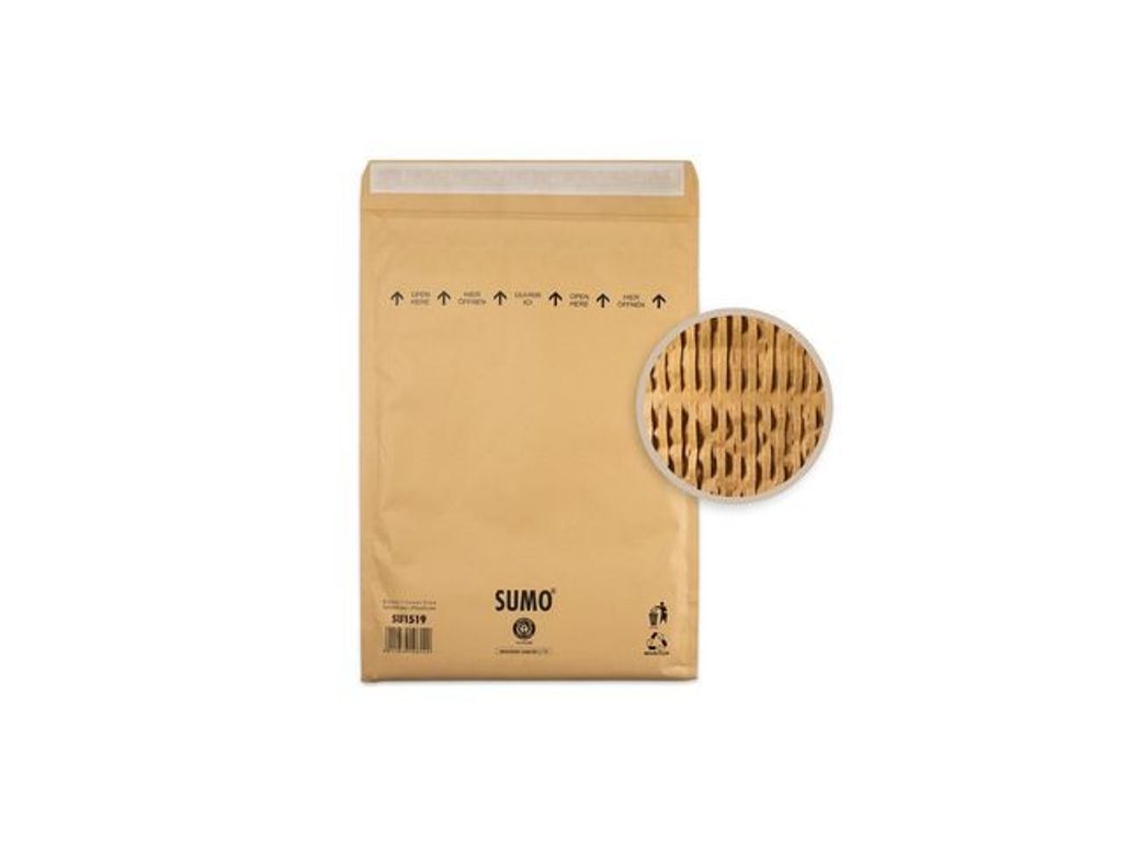 Vadderad påse i 100% återvunnet papper, innehåller ingen plast. SUMO vadderade påsar ett perfekt miljövänligt alternativ när du vill skydda innehållet du skickar. Innehåller inga plaster och är därför helt återvinningsbara. Alla SUMO vadderade påsar har förslutning med remsa. Vadderad med papper över hela påsens yta. Gjord av 100% återvunnet papper som går utmärkt att återvinna igen. - 100% återvunnet papper - 40-50% lägre vikt än jämförbar vadderad påse - Säkert och stöttåligt - Storlek: 365x470mm - Färg: Brun