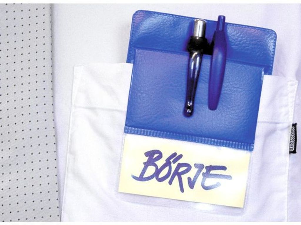 Beskrivning av Pennficka 85x150mm blå Blå pennficka av polypropylenplast för bröstficka. Fack för namnetikett. - Tjocklek: 0,23mm