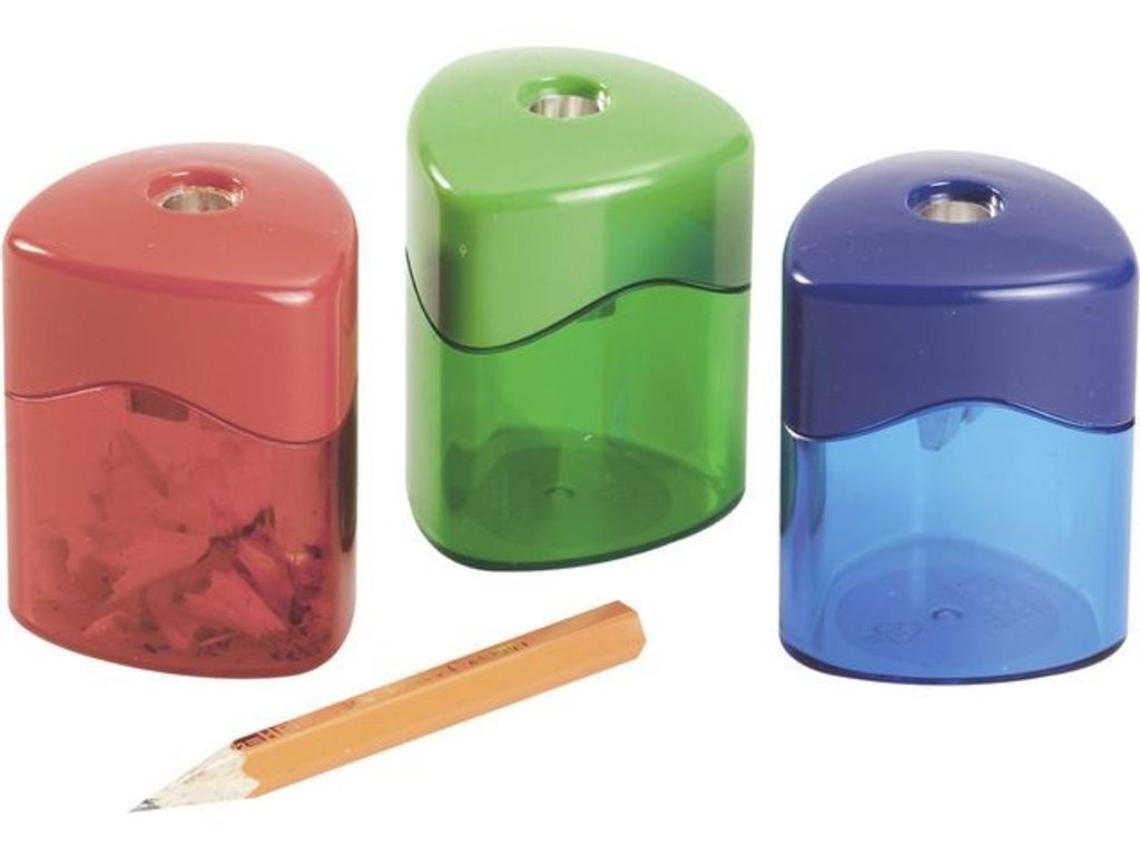 Beskrivning av Pennvässare 953 enkel behållare Högkvalitativ pennvässare med praktisk behållare. Handmodell för vanliga blyertspennor. - Sorterade färger