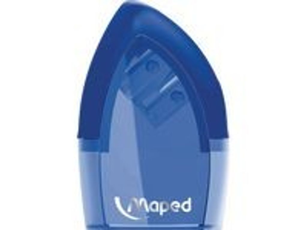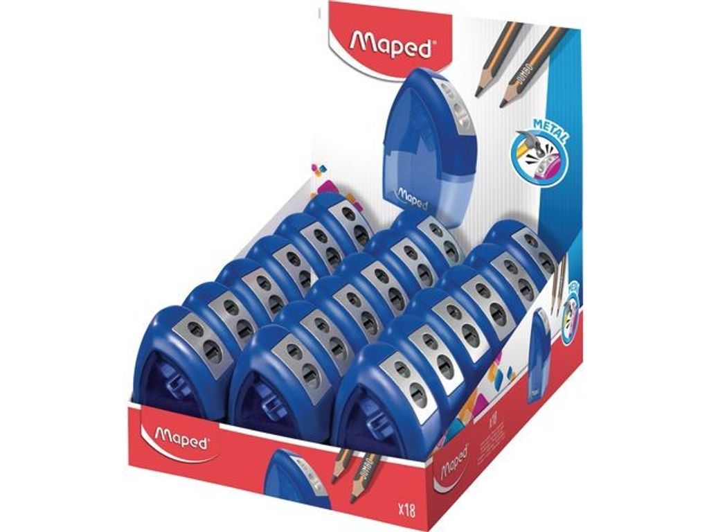 Beskrivning av Pennvässare MAPED Tonic 2 hål Pennvässare, Maped Tonic. Pennvässare av metall med 2 hål i olika storlekar. Med transparent uppsamlingsbehållare av plast. Levereras i utvalda färger: blå, grön och röd - Pennvässare av metall med plastbehållare - 2 hål