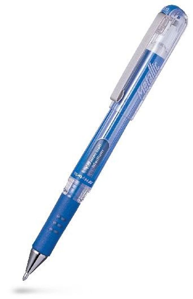 Hybrid Gel Grip DX Metallic En penna för färg och fest! Hybrid Gel Grip har nämligen ett gelbläck med metallic-effekt som ser fantastiskt ut på svart eller färgat papper. Pennan passar perfekt till både skrift och dekorationer - eller till skinande detaljer när du sysslar med Lettering. Hybrid Gel Grip har ett brett gummigrepp, en kropp i transparent plast med silverdetaljer och en huv med clip. Linjebredd: 0,5mm Kuldiameter: 1 mm Färg: metallic blå Pigmentbläck Serie: Hybrid Gel Grip DX Vattenfast och ljusäkta efter torkning Spetstyp: Rollerball Färgbeständig PVC fri
