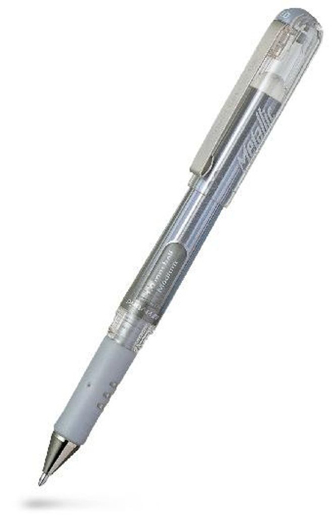 Hybrid Gel Grip DX Metallic En penna för färg och fest! Hybrid Gel Grip har nämligen ett gelbläck med metallic-effekt som ser fantastiskt ut på svart eller färgat papper. Pennan passar perfekt till både skrift och dekorationer - eller till skinande detaljer när du sysslar med Lettering. Hybrid Gel Grip har ett brett gummigrepp, en kropp i transparent plast med silverdetaljer och en huv med clip. Linjebredd: 0,5mm Kuldiameter: 1 mm Färg: silver Pigmentbläck Serie: Hybrid Gel Grip DX Vattenfast och ljusäkta efter torkning Spetstyp: Rollerball Färgbeständig PVC fri