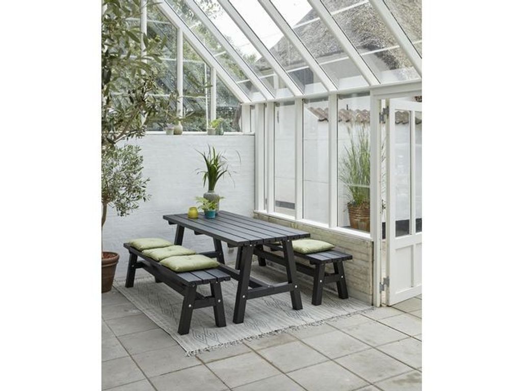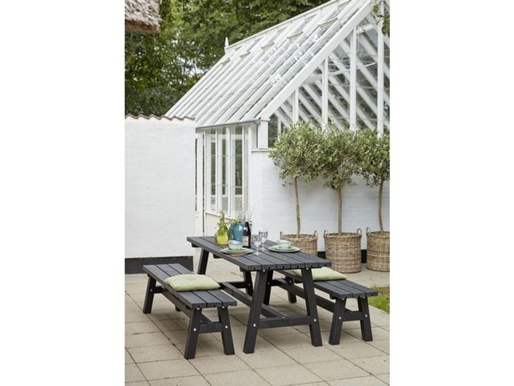 Uppdatera uteplatsen med denna snygga och robusta set med bänkar och bord! En riktigt snygg picknickset med två bänkar och ett bord som tål både vatten, vind och sol. Uppdatera din uteplats eller uteservering med detta set från PLUS. Lätt att torka av och hålla rent! Finns i två olika färger som med fördel kan kombineras! - Färg: Svart - Material: Barrträ - Vikt: 78,50 Kg - Bord: Längd 177 cm - bredd 75 cm - höjd 72 cm - Bänkar: Längd 177 cm - bredd 37 cm - höjd 46 cm
