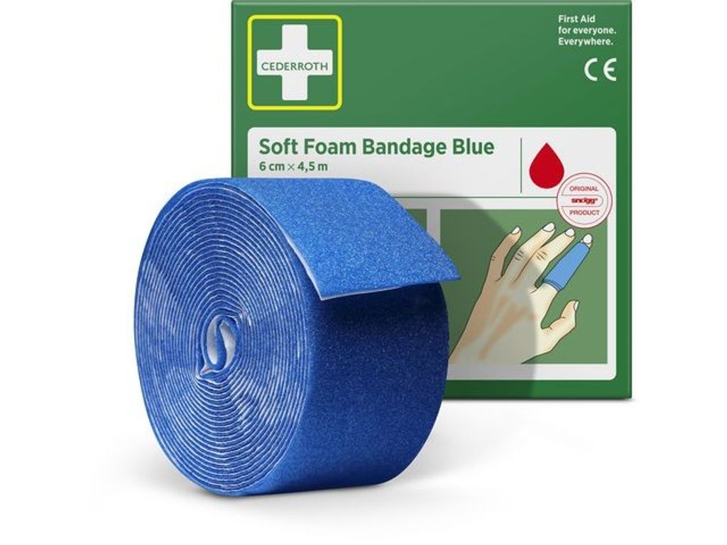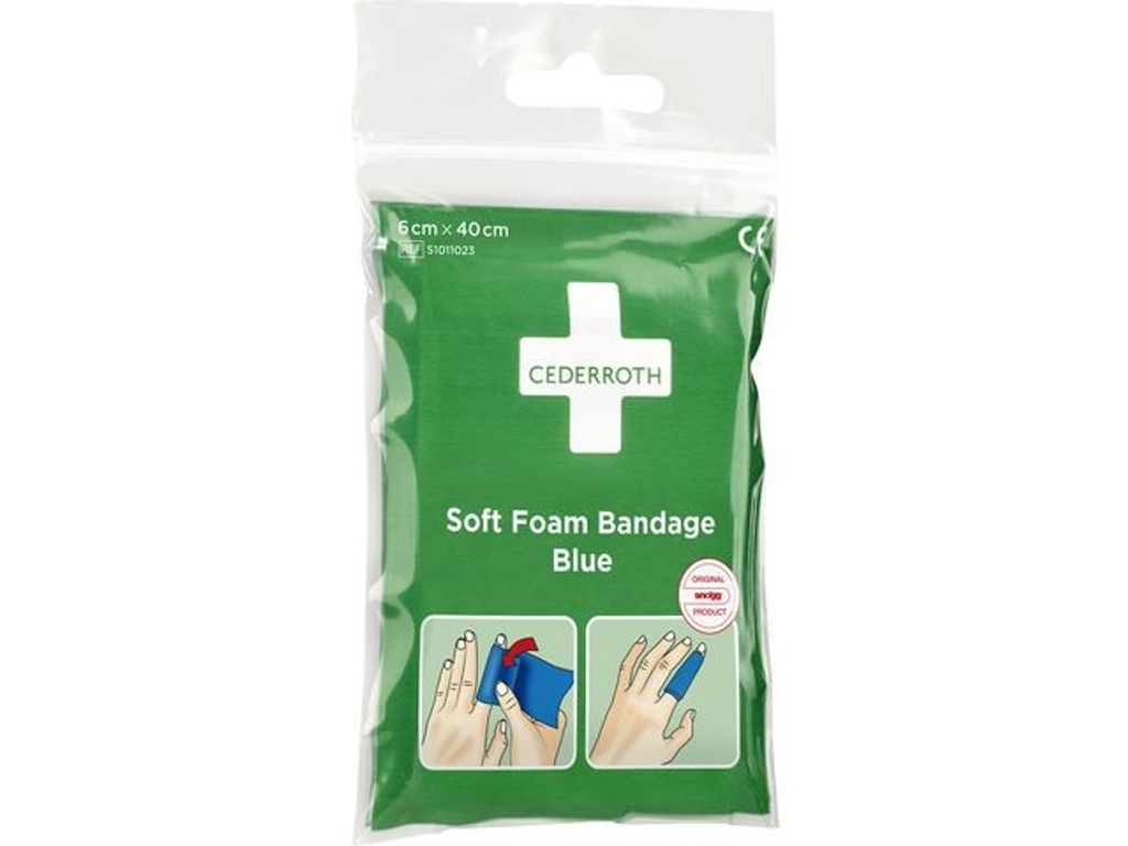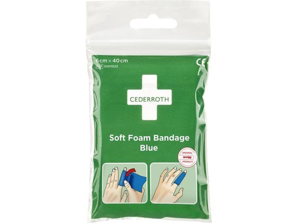 Cederroth Soft Foam Bandage Blue Pocket Size är en praktisk påse i fickformat med 40 cm Soft Foam Bandage. Lätt att bära med sig! CEDERROTH Soft Foam är lätt att applicera på fingrar, händer, armar, tår, fötter och ben med mera. Förbandet passar på alla typer av små sår oberoende av värme, kyla, vått eller torrt och sitter kvar även i vatten. Det är ett självhäftande limfritt plåster och klibbar därför inte fast i hud eller hår. Riv enkelt av en passande bit och linda runt det skadade området. Den blå färgen syns bra och är lämplig att använda vid livsmedelshantering. Idealiskt för snabb och enkel sårvård! - Färg: Blå - Mått: 6 x 40cm