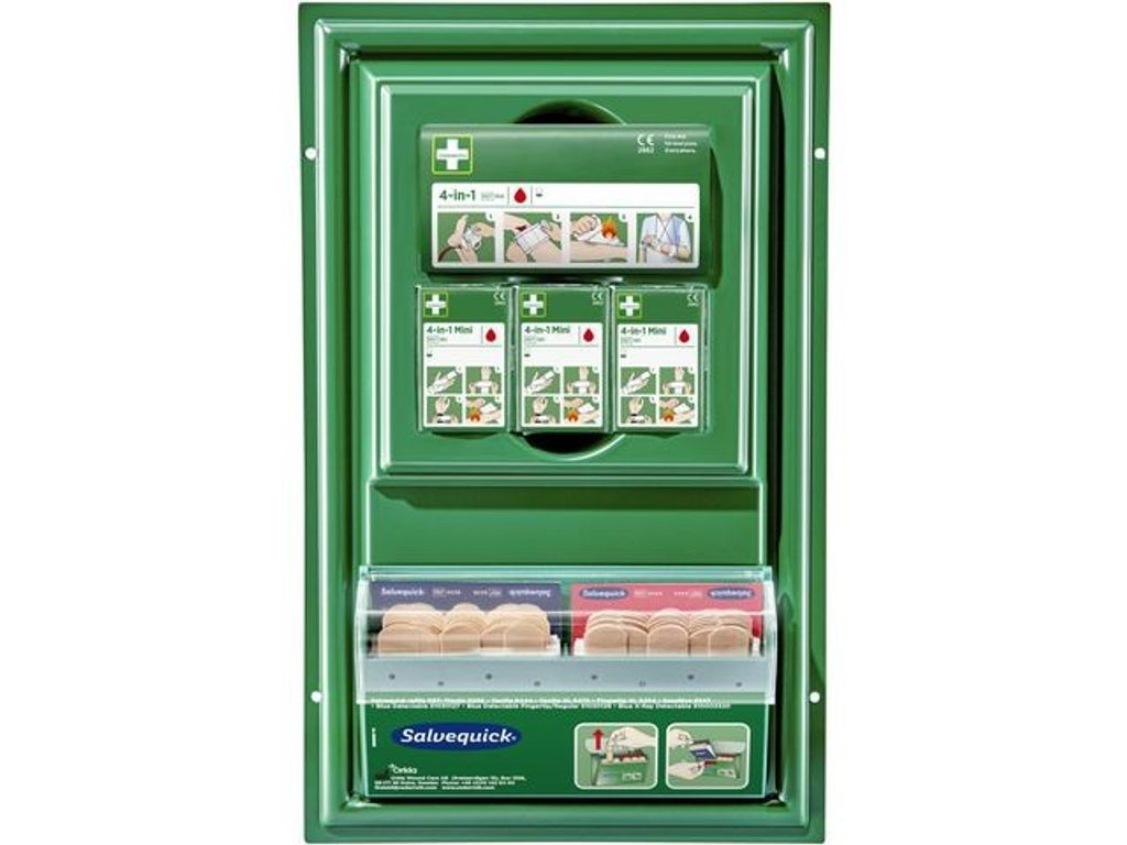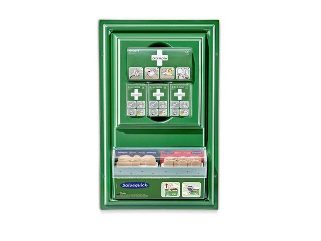 Plåstertavla med enbart plåster och blodstoppare ifrån Cederroth som passar för mindre utrymmen eller för att komplettera annan Första hjälpen-utrustning. Plåstertavla liten är en praktisk plåsterautomat. När plåstret dras ur automaten friläggs den ena häftytan och plåstret är klart att användas. - Innehåller: - 1 stor blodstoppare, 3 små blodstoppare och 1 plåsterautomat. - Mått: bredd 25 cm, höjd 40 cm och djup 5 cm.