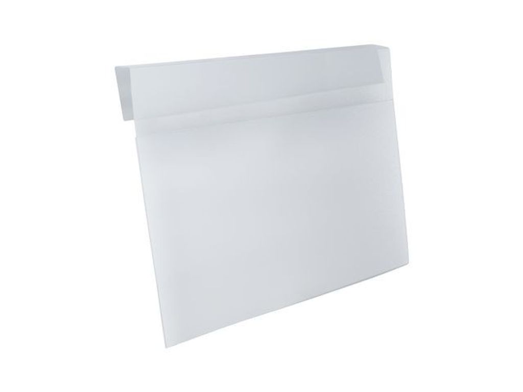 Plastficka för ark i A4 format för exponering av produkter som t ex. ligger i pallkragar eller i en annan display med kanter. Fickan är öppen på båda långsidor samt en kortsida. Fickan är bockad på långsidan vilket gör att den går att hänga på kanten. - A4-format - Liggande utformning - Lätt att byta ut innehållet - Tillverkad i antireflex behandlad plast