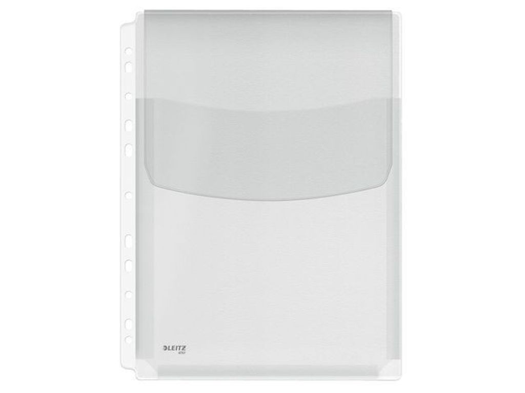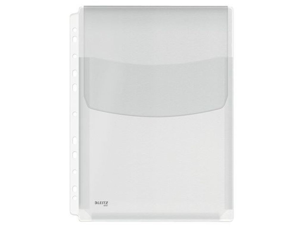 Den stansade fickan från Leitz kan expanderas med upp till 20 mm. Den har dessutom en flik som gör det enkelt att föra in dokument. Den här stansade fickan från Leitz® är idealisk för säker förvaring av skrymmande sidor och det genomskinliga omslaget innebär att innehållet enkelt kan läsas utan att man behöver ta ut det ur fickan. Fliken på de här fickorna gör det inte bara enkelt att komma åt dokumenten inuti, utan innebär även att de kan expanderas och ge plats för en mängd olika innehåll. Den förstärkta ryggen har hål som gör den enkel att sätta in i pärmar och mappar för att hjälpa dig att hålla ordning. - Expanderbar ficka med en flik - Material: PVC - Mått: A4 - Kapacitet: 200 ark - Tjocklek: 0,17 mm - Färg: Transparent