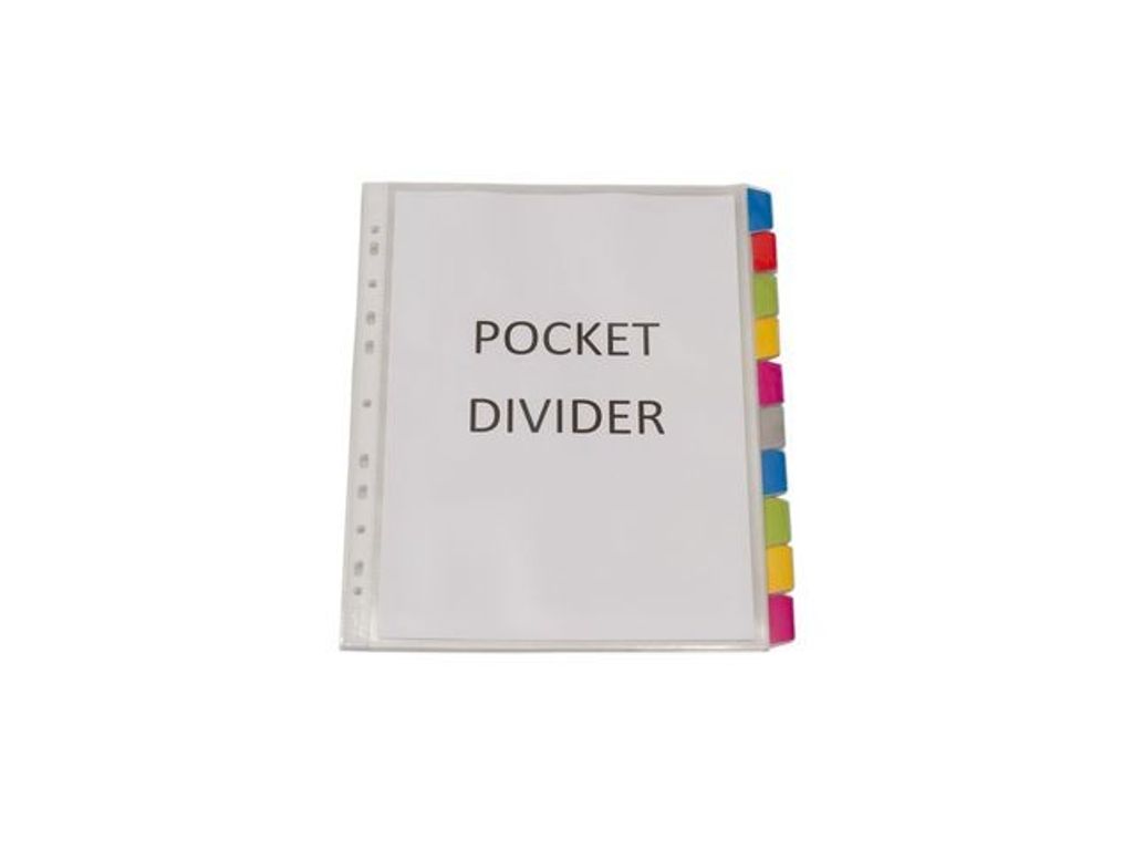 Registerfickor med öppning i överkant. En kombination av plastficka och register tillverkad i kraftig och slitstark PP-plast (0,18 mm). Har förstärkt multihålning och etiketter till flikarna medföljer. Set om 10 flikar med möjlighet till färgkodning av varje flik. Plastregister med fickor i A4-format. En unik kombination av plastfickor och register. Öppen i överkant och med förstärkt multihålning. - Förstärkt hålning - Slitstark - Färgkodade utbytbara flikar - Indexmallar på hemsidan - Mått: 297x214x1 mm - 5 års garanti