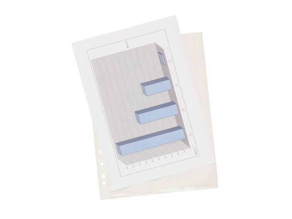Plastficka med präglad yta som är halvgenomskinligt. Dessutom har denna plastficka öppning på långsidan längs med kanten vid perforeringen samt i övre kant. Skydda dina dokument och kort från att skadas och trilla ut med dessa stansade fickor. Eftersom de är genomskinliga kan du läsa genom fickorna. Fickorna är gjord av polypropylen och är slitstarka samt tåliga. De är försedda med 11 hål, så att du enkelt kan lagra och organisera fickor i gaffelpärmar eller ringpärmar. De här stansade fickorna kan användas med A4-papper och har en öppning upptill så att du enkelt kan lägga till och ta bort papper. - Format som stöds: A4 - Hål: 11 - Lämplig för ringpärmar och mappar - Material: Transparent PP-folie - Tjocklek: 55 mikrometer - Färg: Transparent frostad