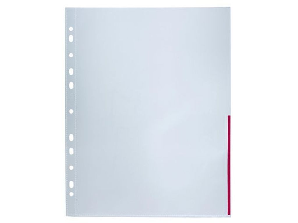 Transparent signalficka i A4-format med färgad kant. Färgorganisering på sidnivå. Signalficka med färgmarkering längs höger sida, vilket gör sortering, arkivering och letande både enkelt och problemfritt. Med öppning upptill och längs med halva höger sida. Tillverkad av 120 µm PP-plast med frostad finish. - Signalfickan är försedd med färgmarkering i höger sida - Snabb och enkel indelning, arkivering och uppsökning av insatt material - Öppning i överkanten och i övre halvan av höger sida