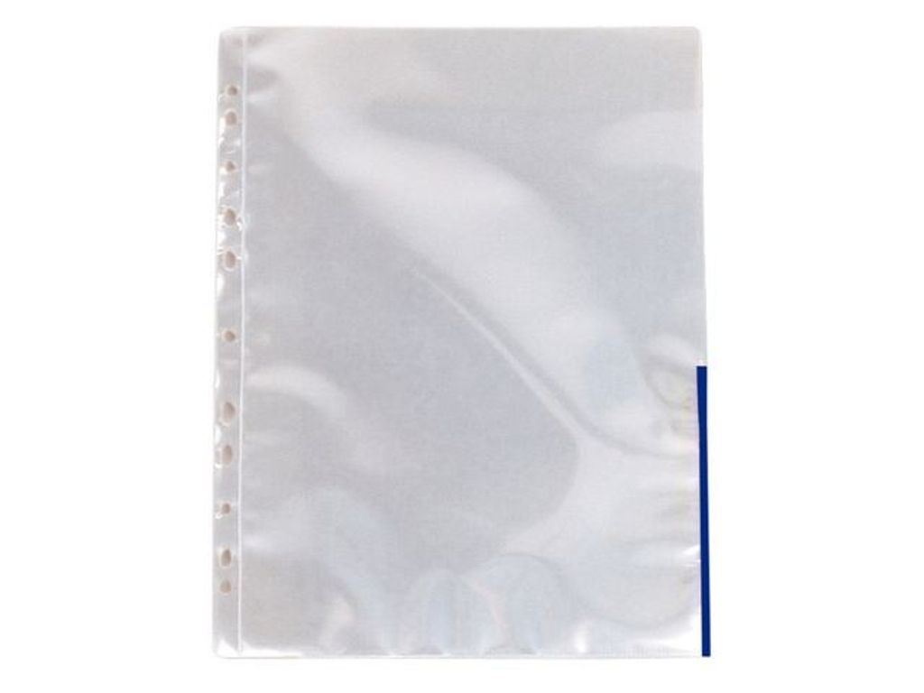 Håll koll på viktiga dokument med dessa högkvalitativa dokumentskydd med blå flik från Esselte. Skapa ett färgkodat arkiveringssystem med de anpassningsbara dokumentskydden från Esselte. En blå flik på höger sida av varje genomskinlig ficka gör att du enkelt kan identifiera fickans innehåll. Dessa dokumentskydd från Esselte är tillverkade av tålig polypropylen och är enkla att rengöra. - Öppningar upptill och till höger - Elva förstärkta stansade hål - Tillverkad i robust 105 mm tjock polypropylen - Dokumentskydd i plast som rymmer A4-dokument - Flikfärg: Blå - Färg: Transparent