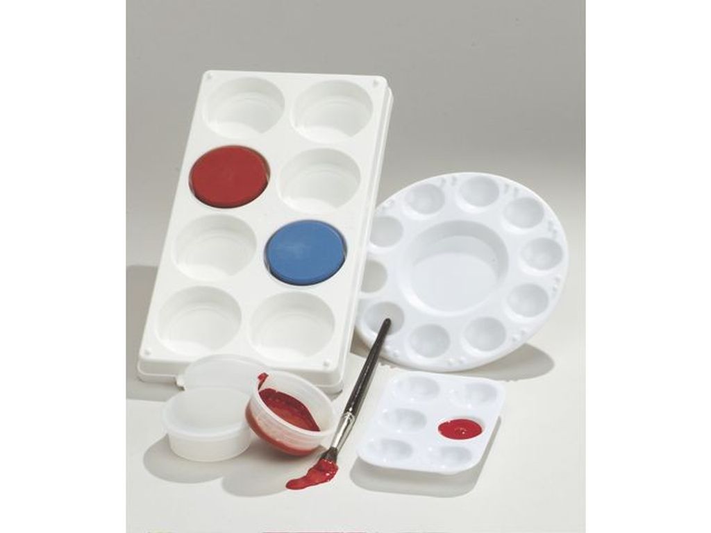 Plastkopp med lock som har plats för ett färgblock. Av polyetenplast. - Antal: 30 - Mått: 68mm i diameter invändigt. Höjd 35mm utan lock, 38mm med lock.