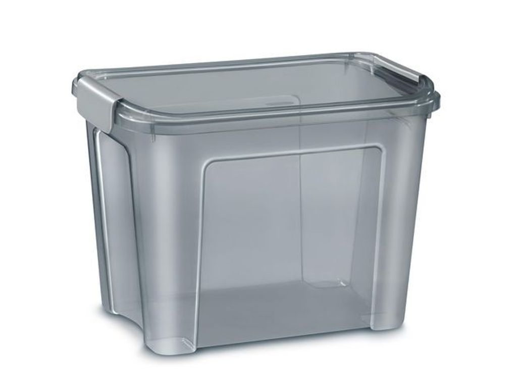 Förvaringslåda tillverkad av totalt 95% återvunnet material. Själva lådan är tillverkad av 100% återvunnen plast som kommer från restmaterial som tas om hand vid produktion av plastartiklar. Clipsen och hjulen är tillverkade av hårdare PP-plast då de behöver tåla högre slitage. Perfekt för förvaring av material och extra utrustning. - Ytfinish av hög kvalitet - Skyddar mot fukt, damm och krosskador - Ergonomisk böjd kant hela vägen runt som underlättar transport och förflyttning av lådan. - Mycket starka clips som håller locket på plats. - Genomskinlig grå färg så att man lätt kan se vad som finns i lådan. - Mått: 389 x 277 x 258mm