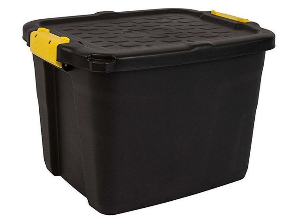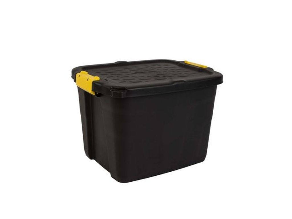 Extra starka förvaringslådor som kan förvara och skydda mot fukt, damm och krosskador. Lock ingår. Lådan kan låsas med hänglås på två motsatta sidor. Den har två kraftiga handtagsclips som försluter lådan väl. Dessa lådor går att stapla säkert och stabilt ovanpå varandra. 100% återvinningsbara och tillverkade av PP-plast av hög kvalitet. - Hög kvalitet - Extra stark - PP-plast - Skyddar mot fukt - 100% återvinningsbara - Mått: 500×400×350mm