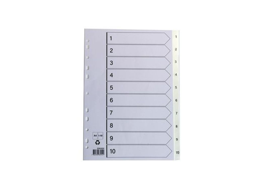 Organisera dina papper med dessa universalstansade, förtryckta register som är tillverkade av hållbar plast. Dessa förtryckta register är användarvänliga, stabila och ger enkel indexering och identifiering av innehållet i dina anteckningsböcker, pärmar och mappar. Registret har försättsblad av papper och förtryckta flikar så att du snabbt kan identifiera och hitta rätt material. Den hållbara plastkonstruktionen tål dagligt slitage och kan enkelt flyttas tack vare universalstansningen som fungerar med alla pärm- och arkiveringssystem. - Register 1-10 - Mått: A4 - Material: Plast (PP) - Färg: Vit - Tjocklek på plast: 110my eller 0,11mm