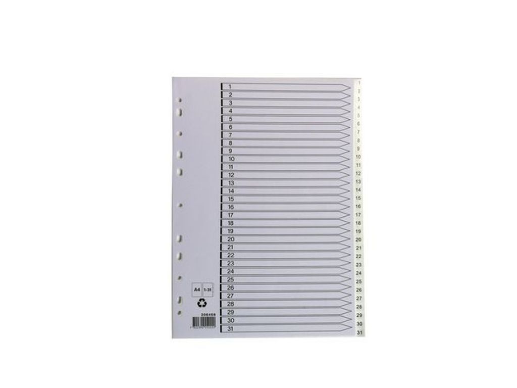 Organisera dina papper med dessa universalstansade, förtryckta register som är tillverkade av hållbar plast. Dessa förtryckta register är användarvänliga, stabila och ger enkel indexering och identifiering av innehållet i dina anteckningsböcker, pärmar och mappar. Registret har försättsblad av papper och förtryckta flikar så att du snabbt kan identifiera och hitta rätt material. Den hållbara plastkonstruktionen tål dagligt slitage och kan enkelt flyttas tack vare universalstansningen som fungerar med alla pärm- och arkiveringssystem. - Register 1-31 - Mått: A4 - Material: Plast (PP) - Färg: Vit - Tjocklek på plast: 110my eller 0,11mm