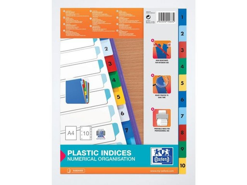 Beskrivning av Plastregister OXFORD A4 1-10 o.färger