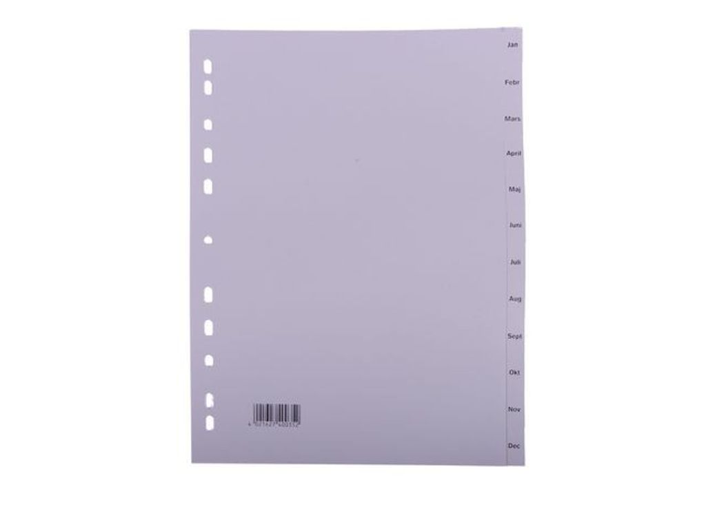 Organisera dina papper med dessa universalstansade, förtryckta register som är tillverkade av hållbar plast. Dessa förtryckta register är användarvänliga, stabila och ger enkel indexering och identifiering av innehållet i dina anteckningsböcker, pärmar och mappar. Registret har försättsblad av papper och förtryckta flikar så att du snabbt kan identifiera och hitta rätt material. Den hållbara plastkonstruktionen tål dagligt slitage och kan enkelt flyttas tack vare universalstansningen som fungerar med alla pärm- och arkiveringssystem. - Register Jan-Dec - Mått: A4 - Material: Plast - Färg: Grå